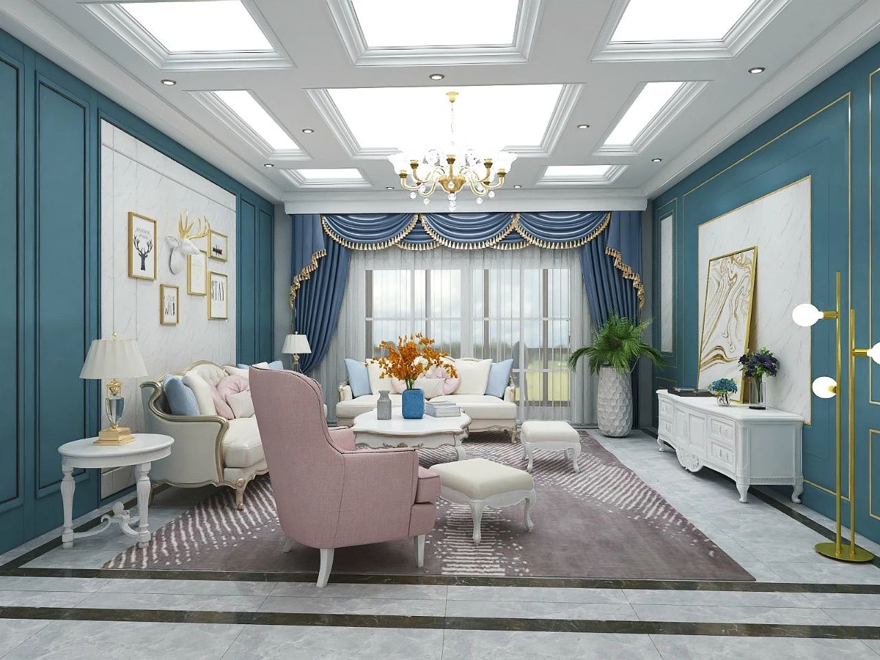帶著盛唐的高雅,攜著宋代的飄逸穿越明清的繁華,讓歷史融進你的生活歷經唐時初創、元代的日益成熟再到明清的鼎盛,青花瓷自誕生的那一刻仿佛就注定成為中國藝術文化史上最經典最重要的符號之一??蛷d頂部鋪以線條裝飾,精致.